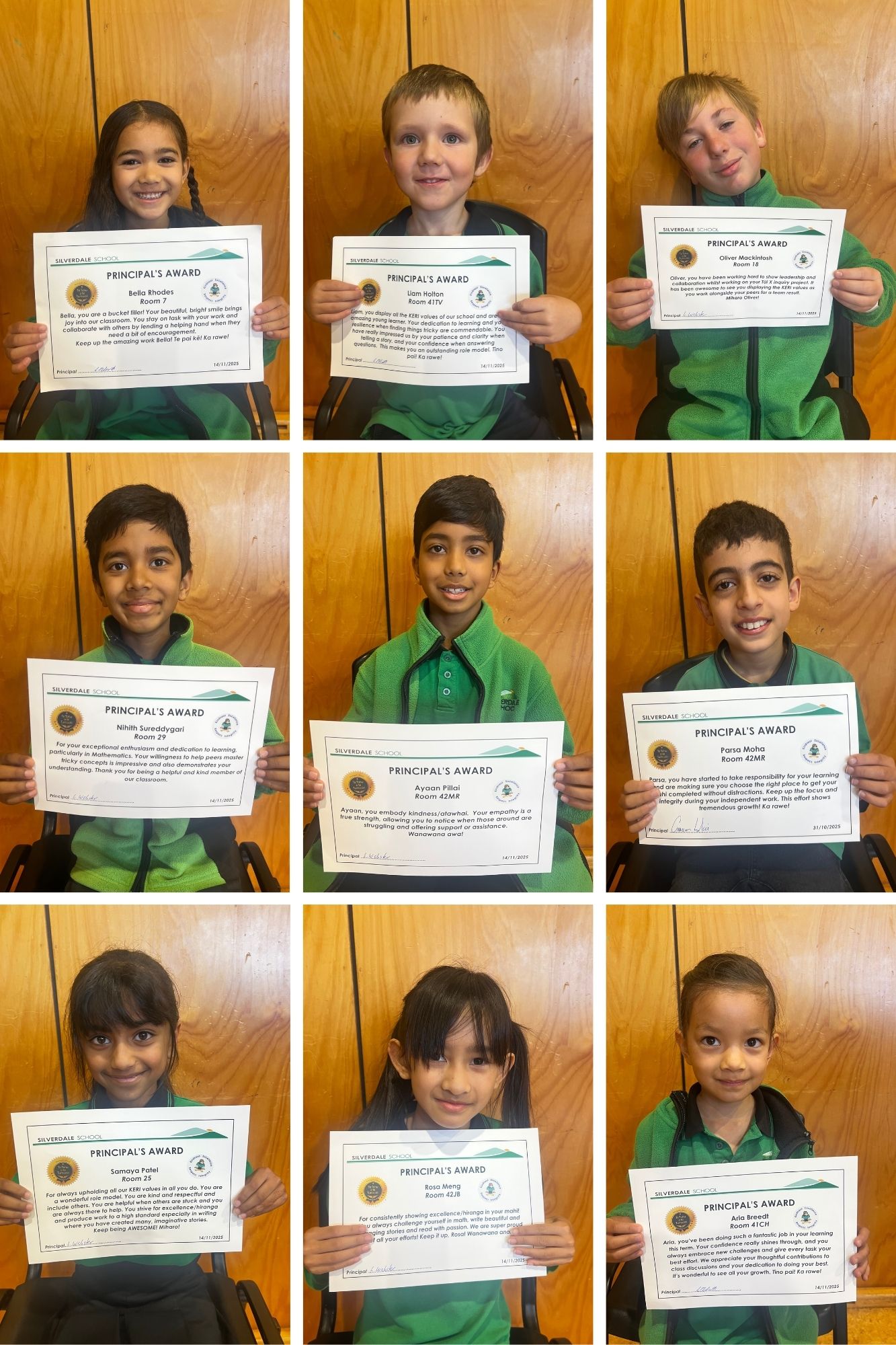 Congratulations to the students who received principal awards at last week’s assembly.