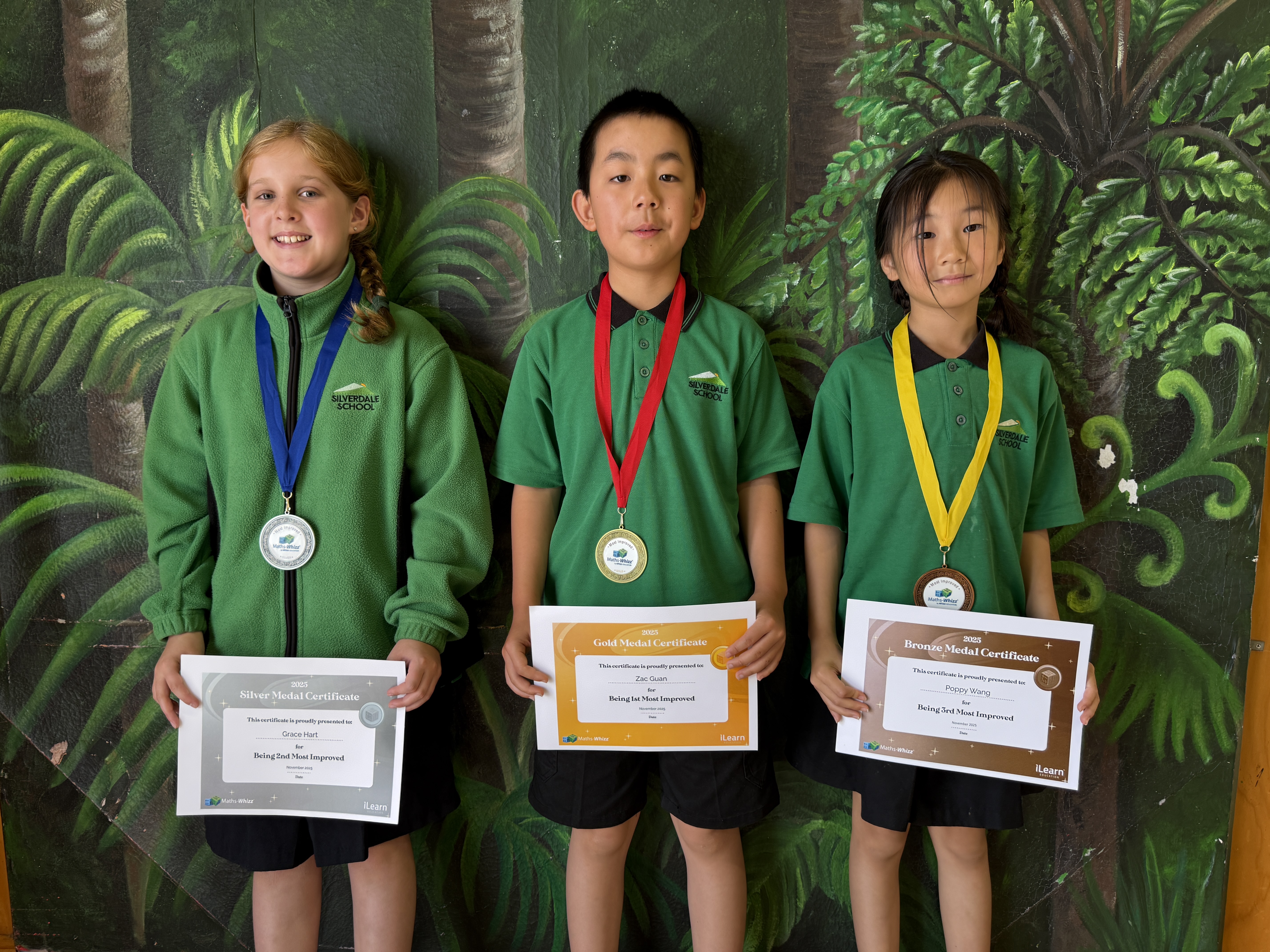 Congratulations to Zac Guan, Gold, Grace Hart, Silver and Poppy Wang, Bronze, medal winners in Most Improved 2025 in Maths-Whizz.